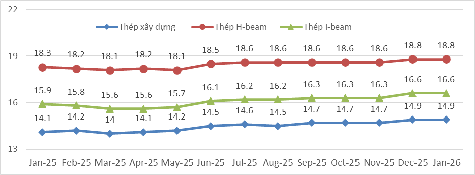 Tuần qua, thị trường tiêu thụ sản phẩm thép xây dựng ghi nhận nhiều tín hiệu tích cực về lượng bán ra tại các đại lý bán lẻ cùng với nhịp giải ngân đầu tư công và nhu cầu xây dựng dân dụng gia tăng chào mừng đại hội Đảng lần thứ XIV. Hoà nhịp cùng không khí lao động trên cả nước, các đơn vị cũng đặt mục tiêu tăng trưởng từ tháng đầu tiên của năm 2026. Tuy nhiên, các nỗi lo vẫn còn đó khi áp lực chi phí đầu vào ngày càng lớn, khiến giá nhiều loại vật liệu đầu vào liên tục được điều chỉnh tăng như giá phế liệu, than cốc, gas… điều này khiến cho giá bán sản phẩm tăng trong thời gian vừa qua theo công bố của các đơn vị sản xuất trong nước. Điều này đặt ra bài toán kiểm soát chi phí cho doanh nghiệp sản xuất thép xây dựng trong nước trong thời gian tới nhằm duy trì giá bán cạnh tranh.