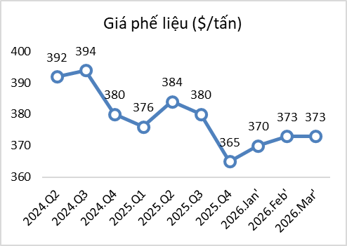 . Giá phế liệu trong tuần qua, ở phía Bắc phổ biến từ 9.1 – 9.5 triệu đồng/tấn, miền Nam dao động từ 9.2 – 9.6 triệu đồng/tấn, giá chưa bao gồm VAT. Theo các đơn vị vận tải cho biết, giá cước vận tải phế liệu từ miền Bắc vào miền Nam cao hơn dao động từ 1,350 ~ 1,550 ngàn đồng/kg, mức giá này vẫn được duy trì từ năm trước cho đến năm 2026 và chưa có dấu hiệu thay đổi từ đơn vị vận chuyển.
