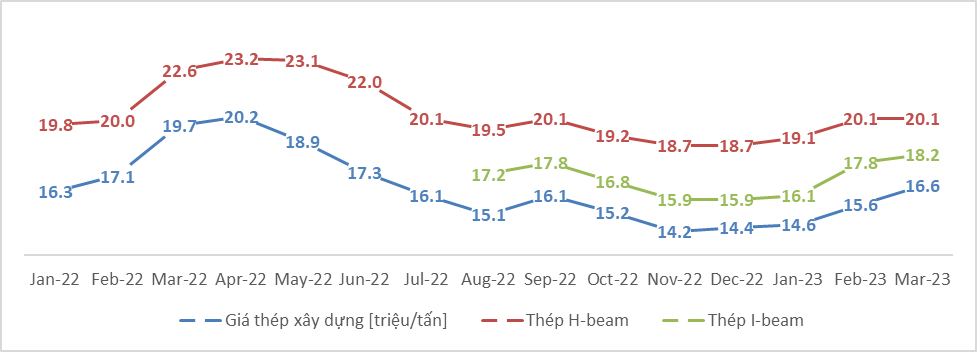 Giá bán sản phẩm thép hình H-beam trung bình từ 20.1~20.5 triệu đồng/tấn trong khi giá bán sản phẩm I-beam thấp hơn được sản xuất bởi các nhà sản xuất trong nước. Giá bán sản phẩm thép hình tăng đáng kể so với thời điểm cùng kỳ năm trước nguyên nhân là chi phí tăng cao do giá nguyên liệu tăng trong bối cảnh sản xuất gặp nhiều khó khăn do dịch bệnh covid-19 kéo dài, dự báo tình hình giá bán sẽ vẫn duy trì ở mức cao.