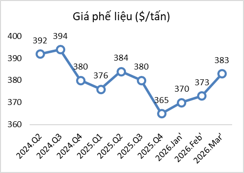 Chào giá cho phôi thép loại cơ bản đầu tuần này đã tăng thêm 5 USD/tấn, đạt mức 460 USD/tấn. Các luồng vận chuyển thép tái chế, thép phế liệu từ Trung Đông cũng bị gián đoạn, dự kiến sẽ đẩy giá phế liệu nhập khẩu tiếp tục tăng trong ngắn hạn.