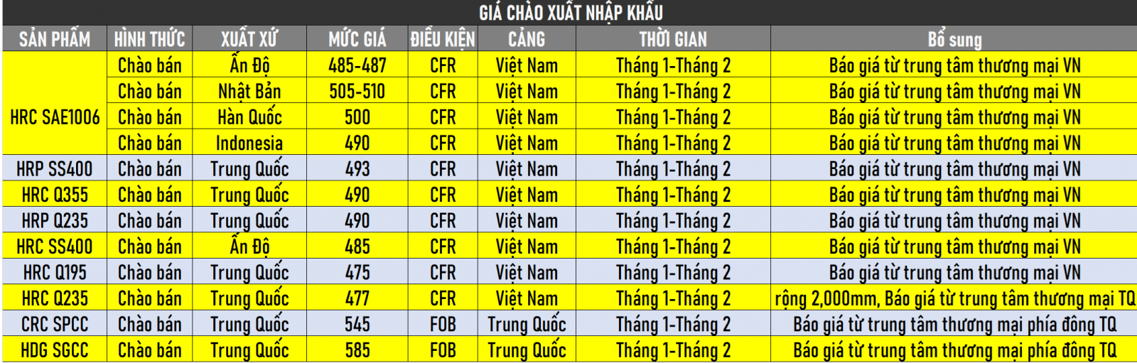 - Daily: Bảng giá HRC & CRC