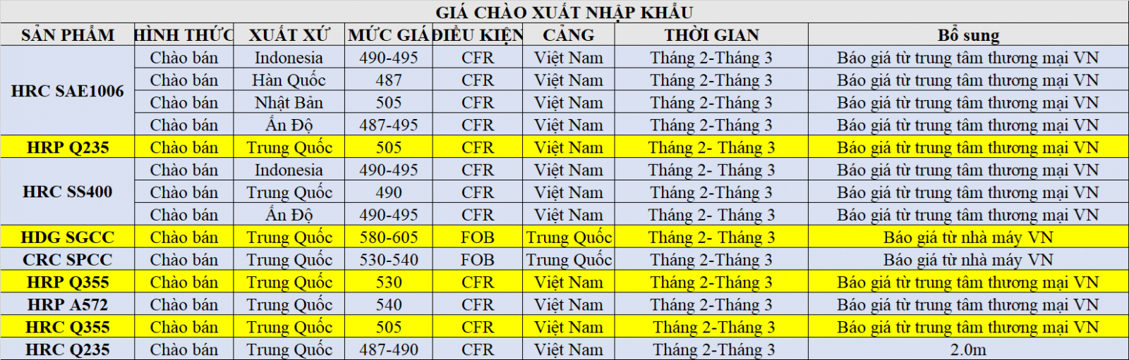 - Daily: Bảng giá HRC & CRC