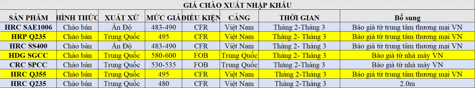 - Daily: Bảng giá HRC & CRC