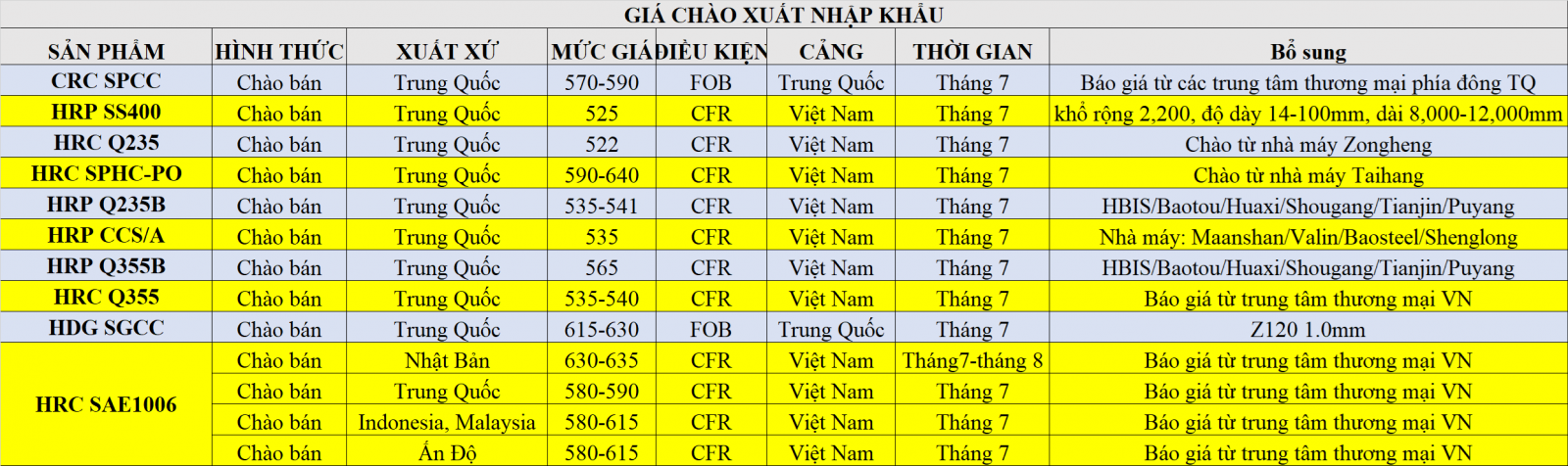 - Daily: Bảng giá HRC & CRC