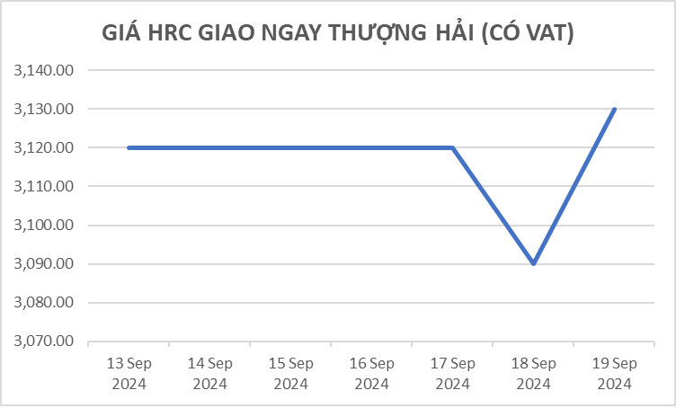 HRC giao ngay tại Thượng Hải tăng 10 NDT/tấn so với tuần trước lên 3,130 NDT/tấn ngày 19/9. Giá HRC tương lai tháng 1 trên Sàn giao dịch tương lai Thượng Hải tăng nhẹ lên 3,249 NDT/tấn.