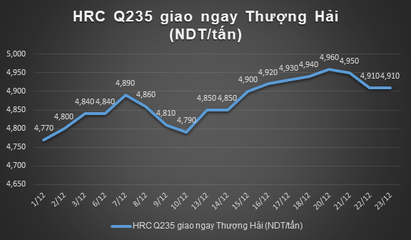 Tương tự, giá cả cũng giảm dần về cuối tuần, mất hết mức tăng nửa đầu tuần vì nhu cầu chậm và tâm lý thị trường yếu. So với tuần trước, giá HRC giao ngay giảm 10 NDT/tấn so với tuần trước xuống 4,910 NDT/tấn xuất xưởng có thuế.