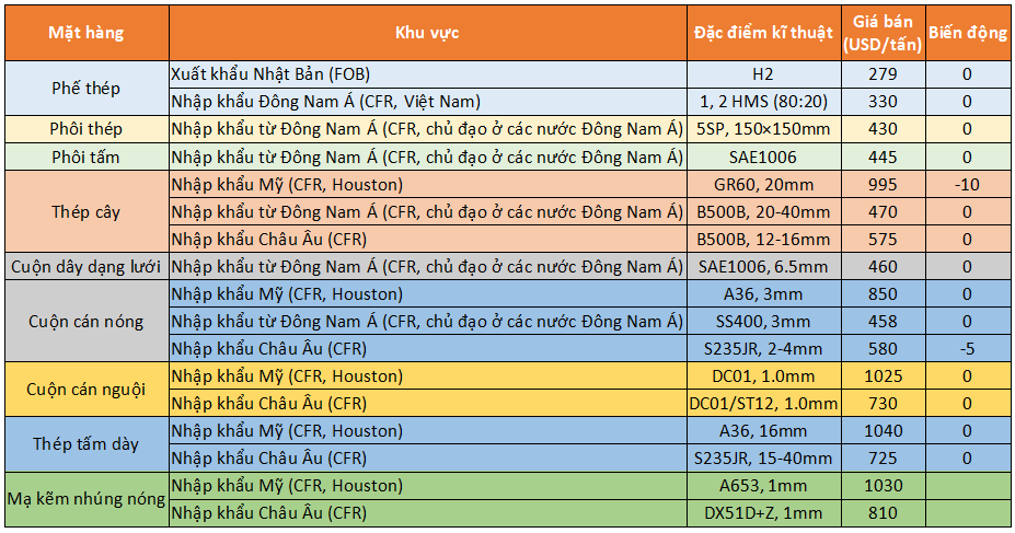 TỔNG HỢP GIÁ THÉP THẾ GIỚI NGÀY 20/11/2025