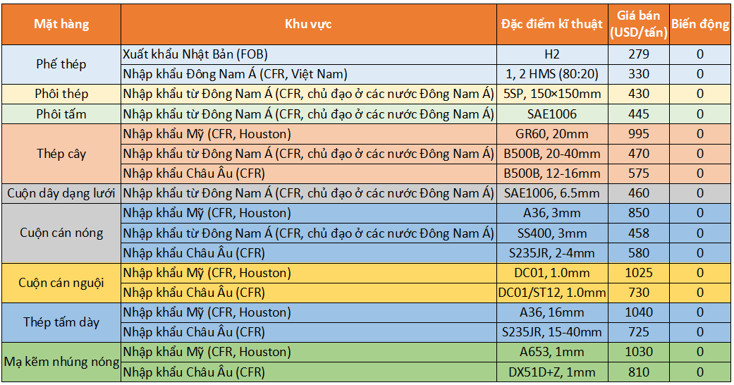 TỔNG HỢP GIÁ THÉP THẾ GIỚI NGÀY 24/11/2025
