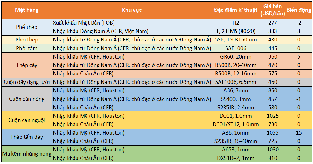TỔNG HỢP GIÁ THÉP THẾ GIỚI NGÀY 25/11/2025