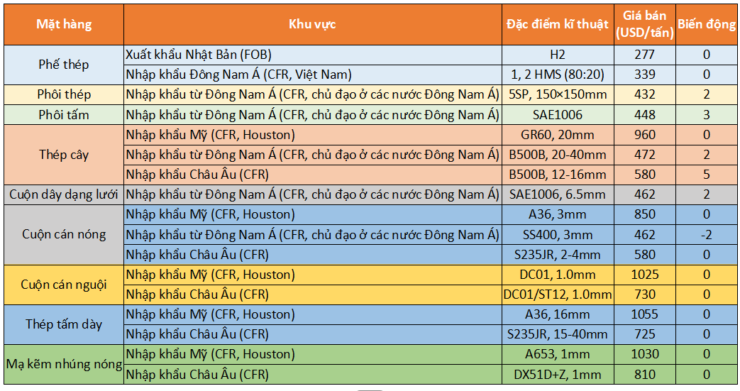 TỔNG HỢP GIÁ THÉP THẾ GIỚI NGÀY 28/11/202
