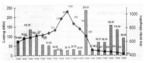 | Lượng (tấn) | Trị giá (USD) | Giá (USD/tấn) | Lượng | Trị giá | Giá |