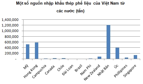 Theo số liệu thống kê của Tổng cục Hải quan Việt Nam, nhập khẩu sắt thép phế liệu của Việt Nam chủ yếu đến từ 4 quốc gia và vũng lãnh thổ như Mỹ, Hồng Kông, Nhật Bản, Úc và Singapore, trong đó Nhật Bản là nước xuất khẩu nhiều sắt thép phế liệu nhất vào Việt Nam.